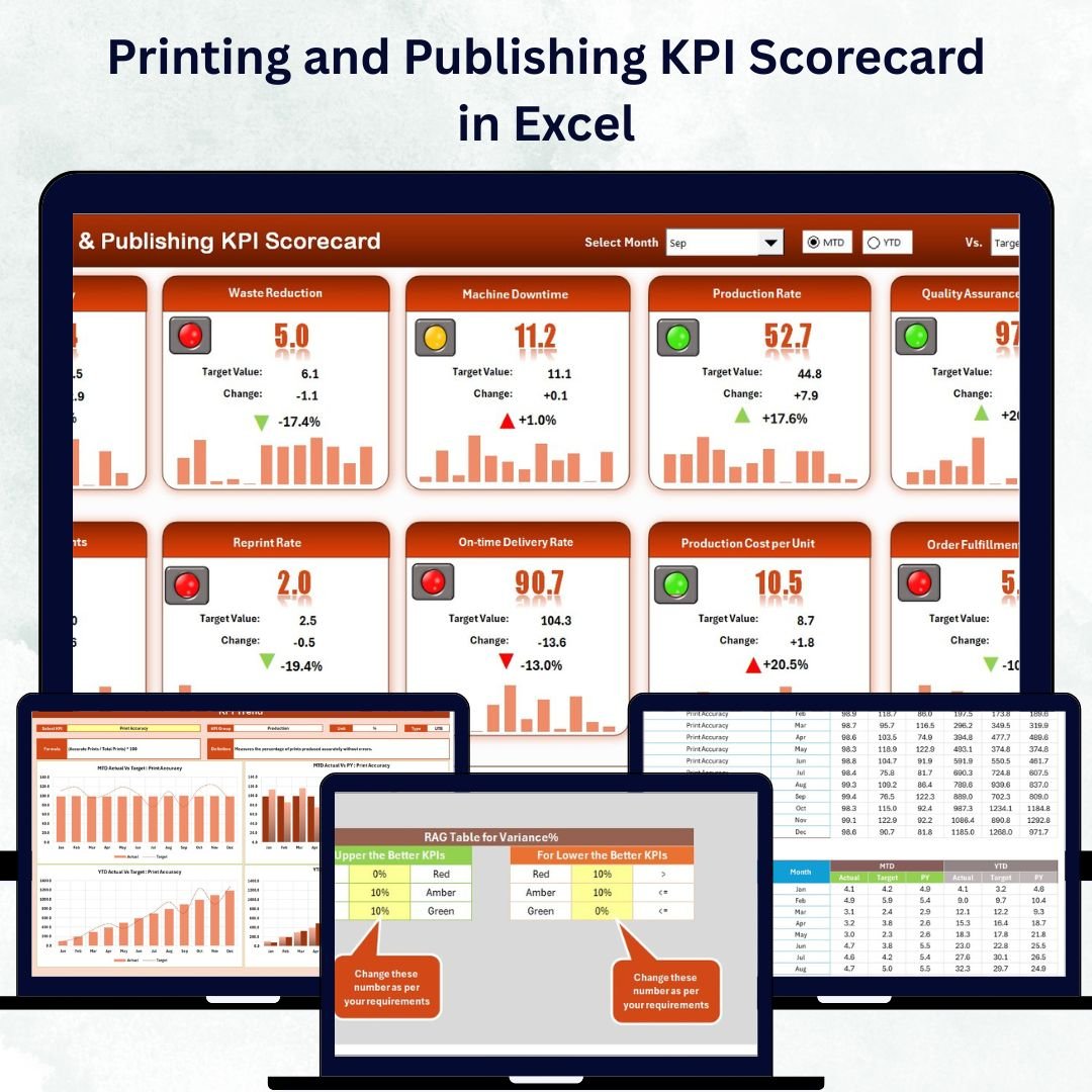 📂 What’s Inside the Printing and Publishing KPI Scorecard in Excel