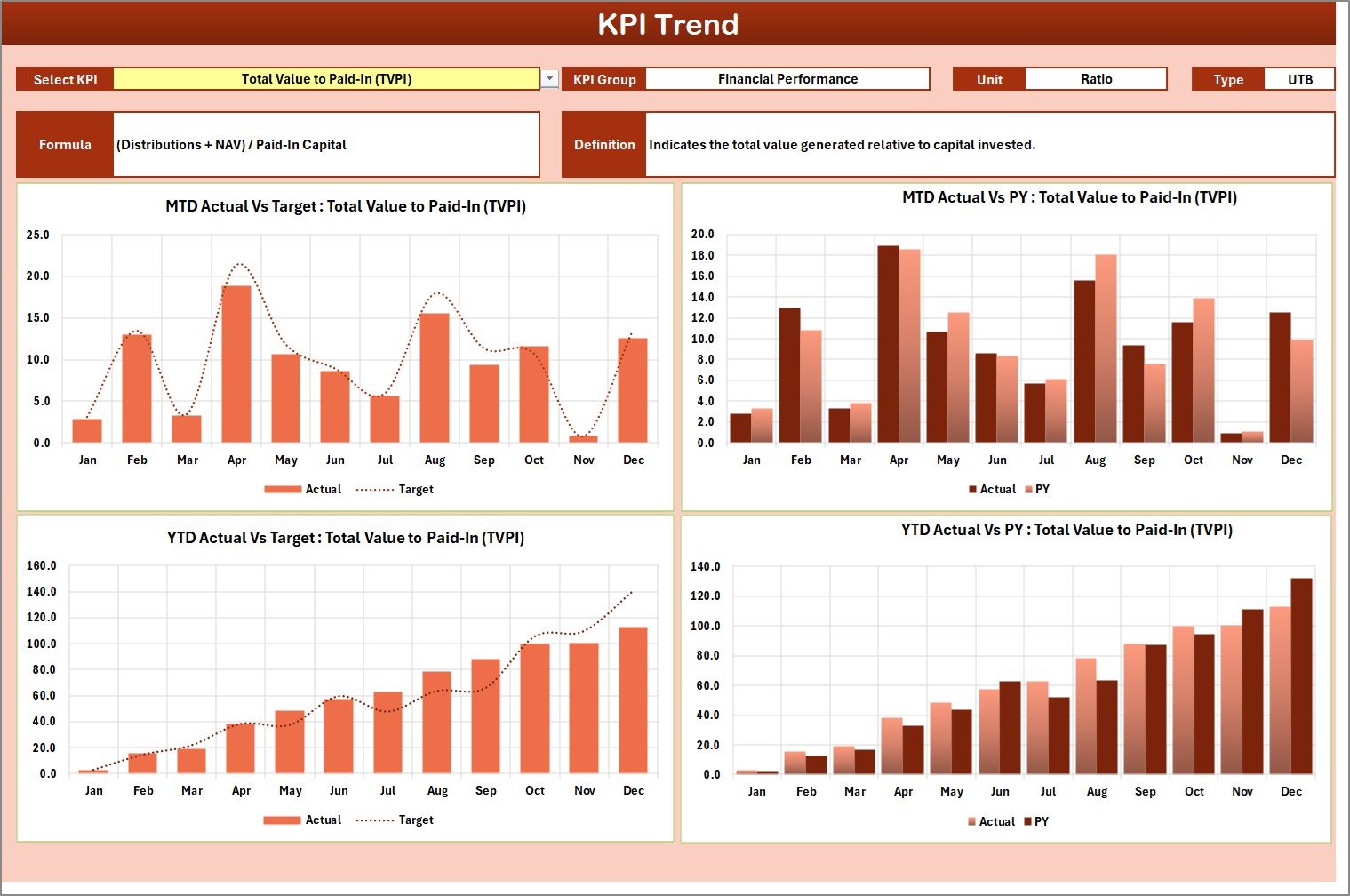 💰 Fund Performance KPIs – IRR, MOIC, DPI, RVPI, TVPI.