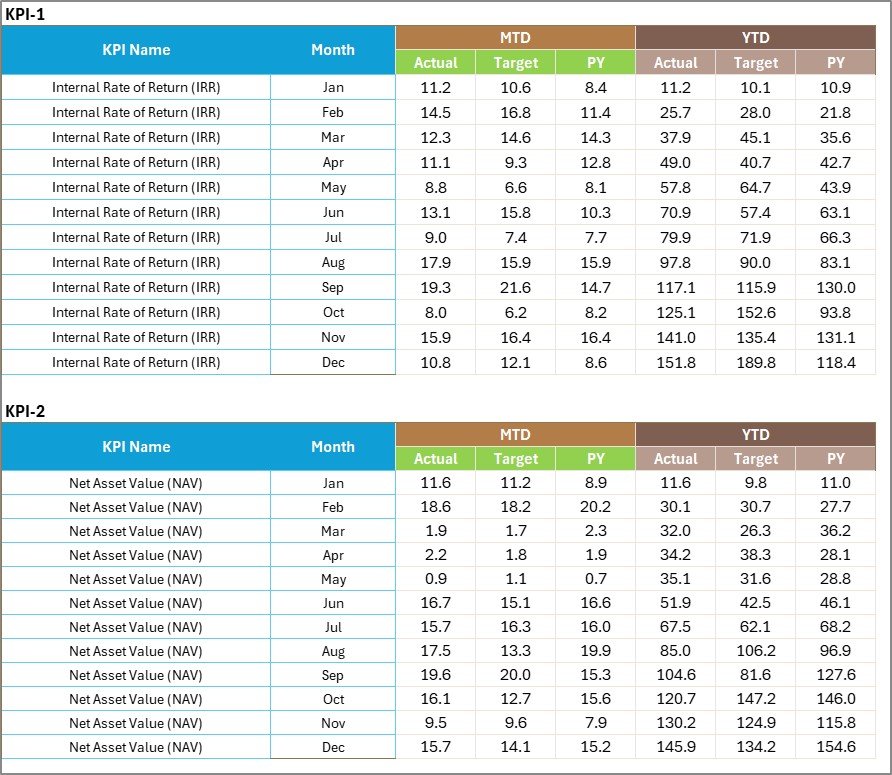 Private Equity KPI Scorecard in ExcelPrivate Equity KPI Scorecard in Excel