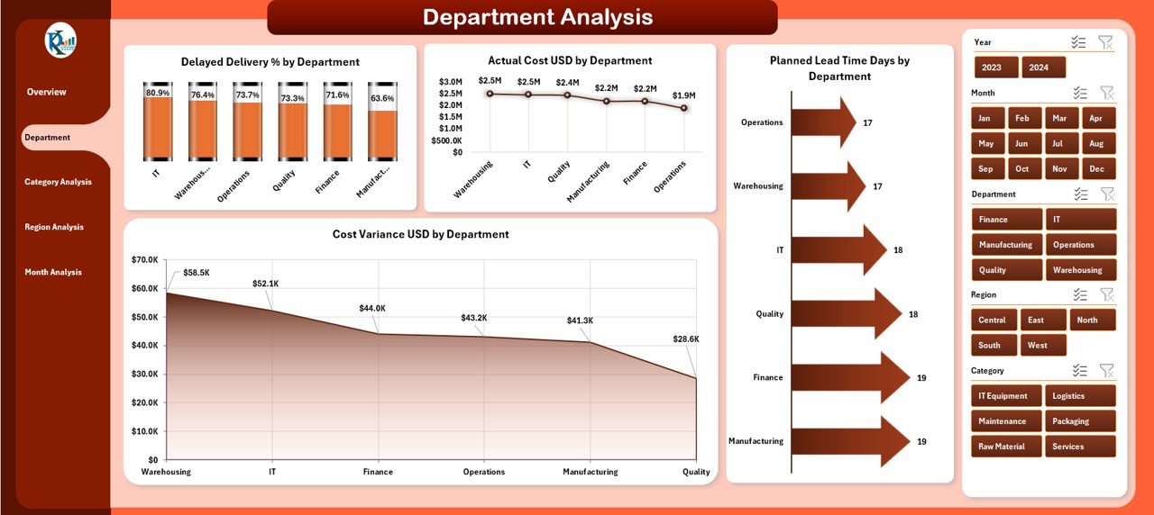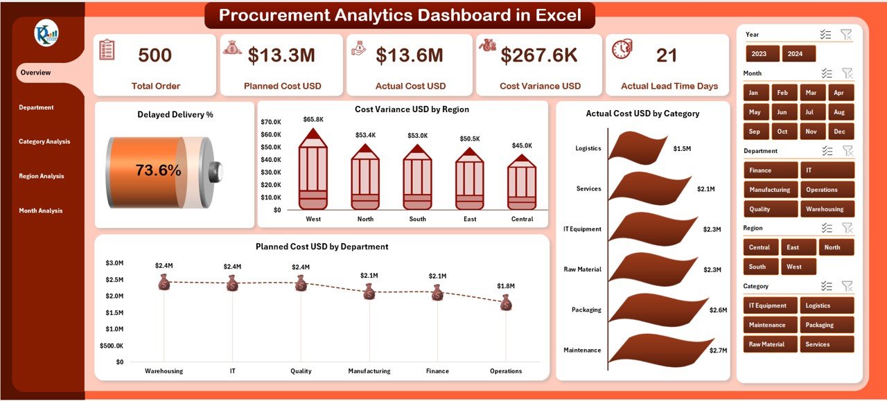 The Procurement Analytics Dashboard in Excel is a ready-to-use, interactive analytics solution designed to provide complete visibility over procurement cost, delivery performance, planning efficiency, and trends—all inside Excel. Instead of reacting to issues after they escalate, procurement teams gain early insights and actionable intelligence.
