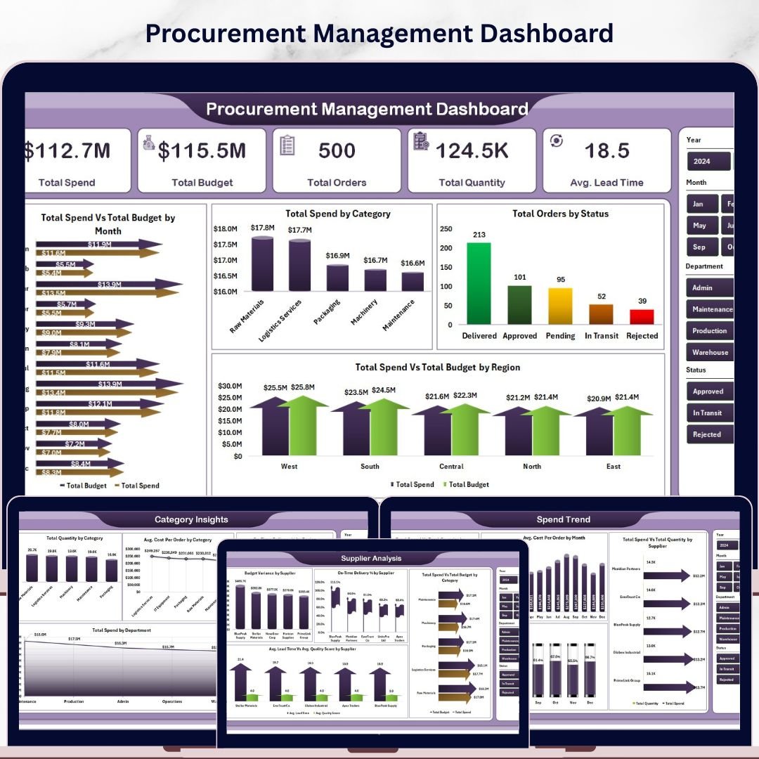 📌 Procurement Managers and Officers who need to monitor spending, supplier performance, and budget compliance across categories and regions.