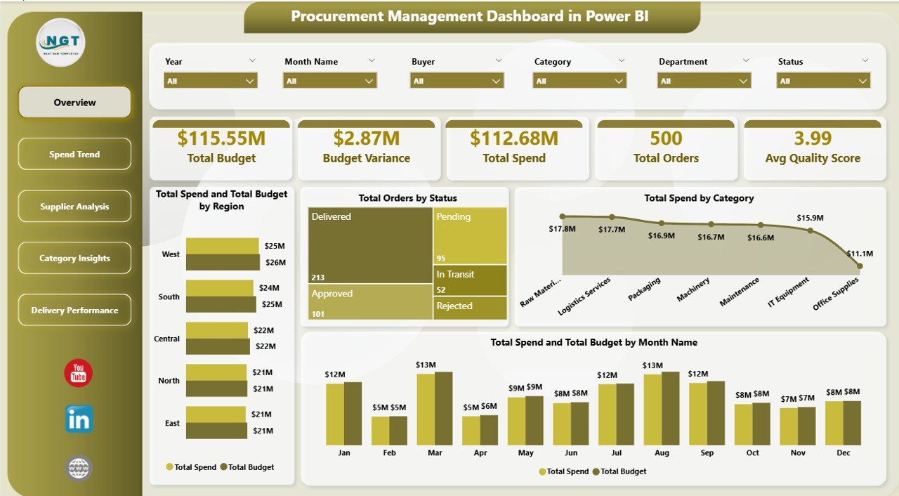 📌 Procurement Managers and Officers who need to monitor spending, supplier performance, and budget compliance across categories and regions.