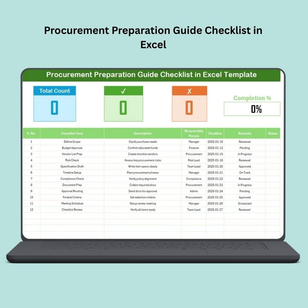 Let’s explore how this digital product makes procurement faster, smoother, and error-freeProcurement Preparation Guide Checklist in Excel