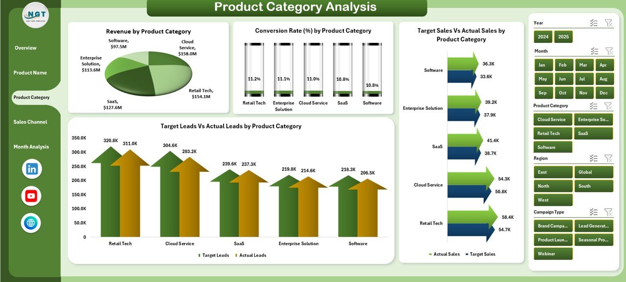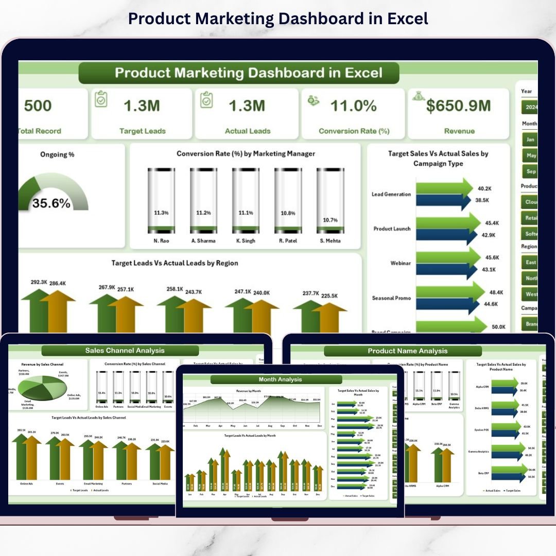 Instead of switching between multiple reports, the Product Marketing Dashboard in Excel brings everything into one powerful, interactive system.
