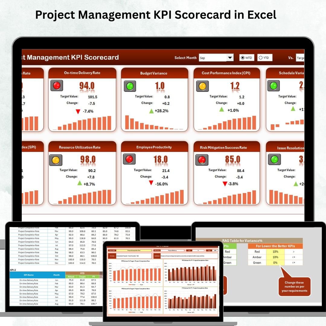 📂 What’s Inside the Project Management KPI Scorecard in Excel