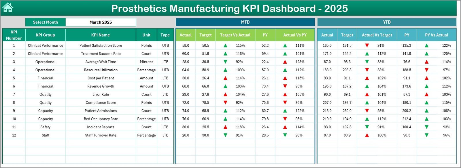 How to Use the Prosthetics Manufacturing KPI Dashboard