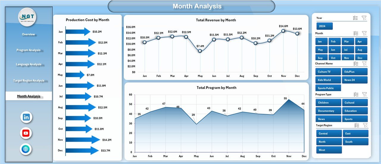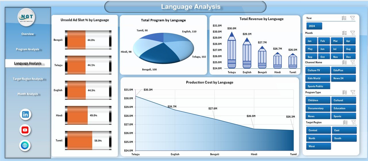 3️⃣ Use slicers to filter by channel, program, language, region, or month