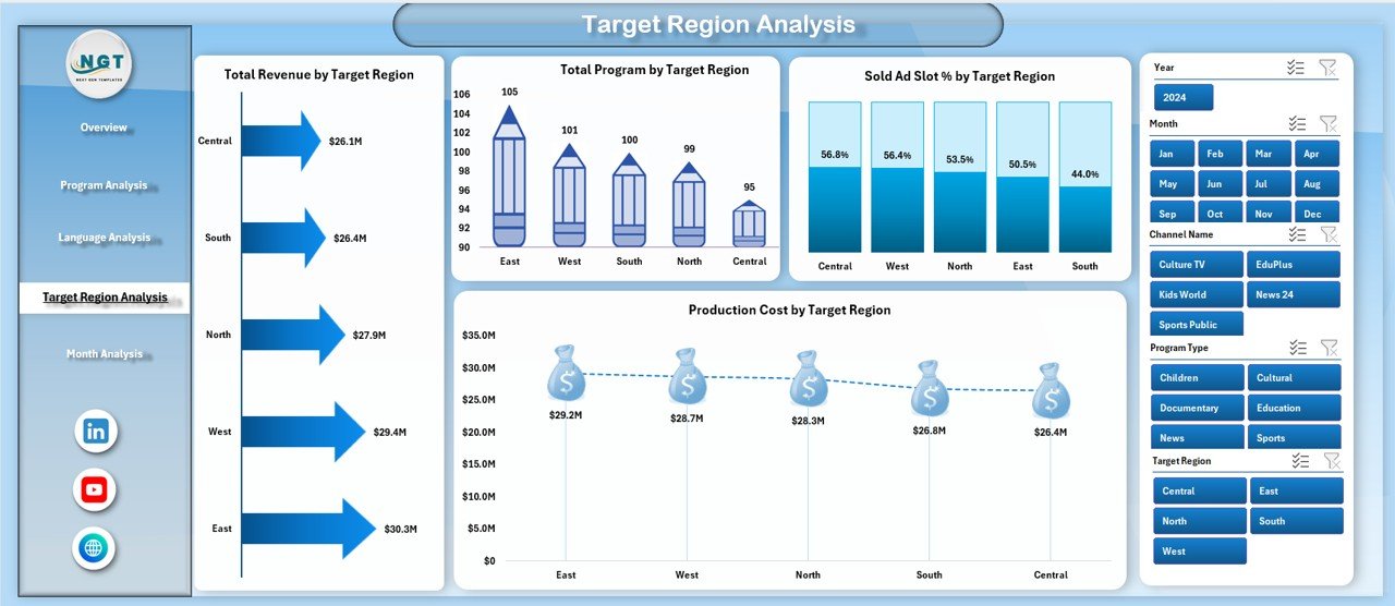 🎯 Smart Slicers – Filter data by channel, program type, language, region, and time period