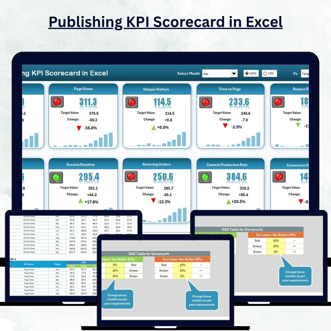 The Publishing KPI Scorecard in Excel .is a ready-to-use performance management tool built for publishers, editors, and content managers who want to measure their success efficiently. Designed to bring clarity and control to your publishing operations, it helps you track editorial, sales, and marketing KPIs — all in one place!