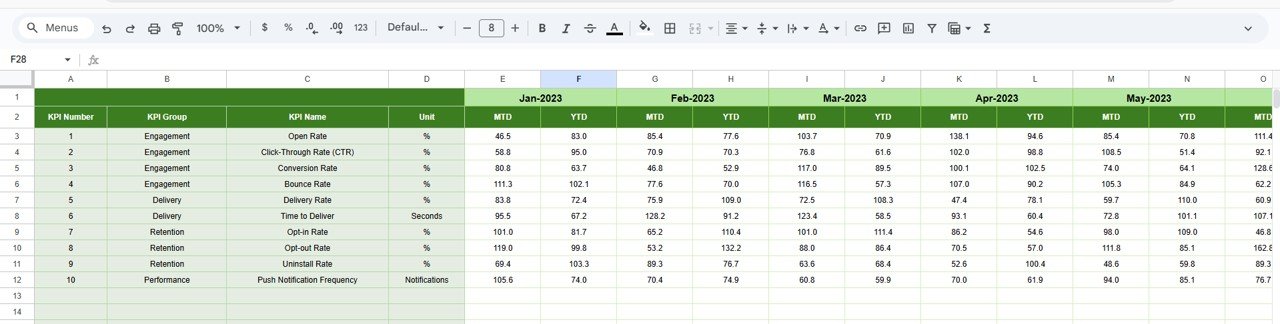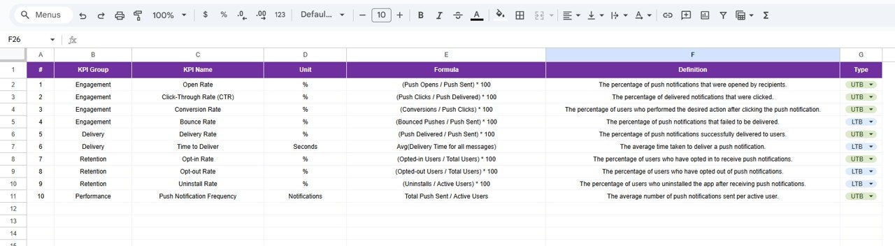 That is exactly why the Push Notification KPI Dashboard in Google Sheets becomes a must-have analytics solution.