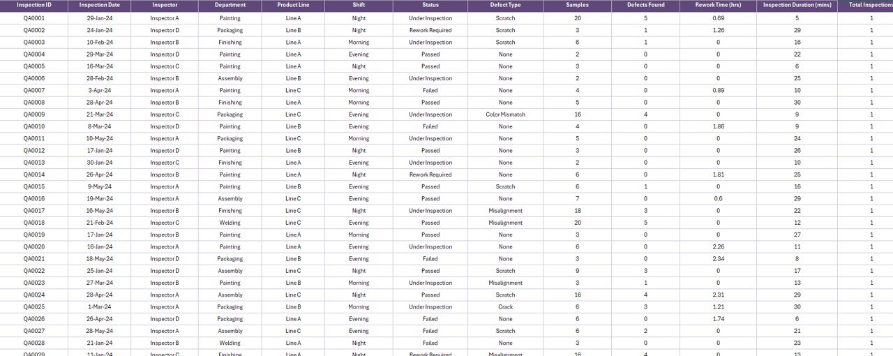📈 Automated Calculations – Built-in formulas compute defect percentages, averages, and variances to minimize manual work.