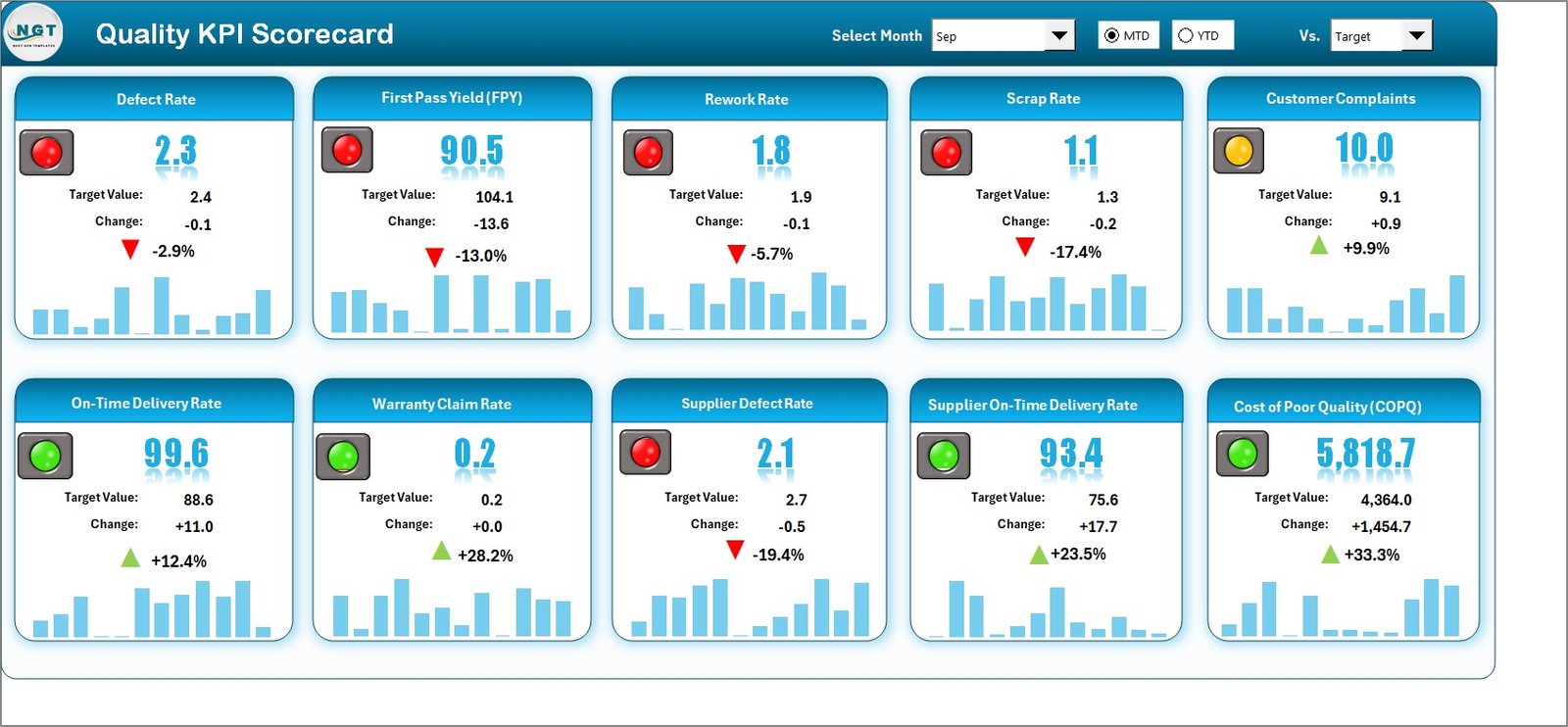 By using the Quality KPI Scorecard in Excel, organizations can: