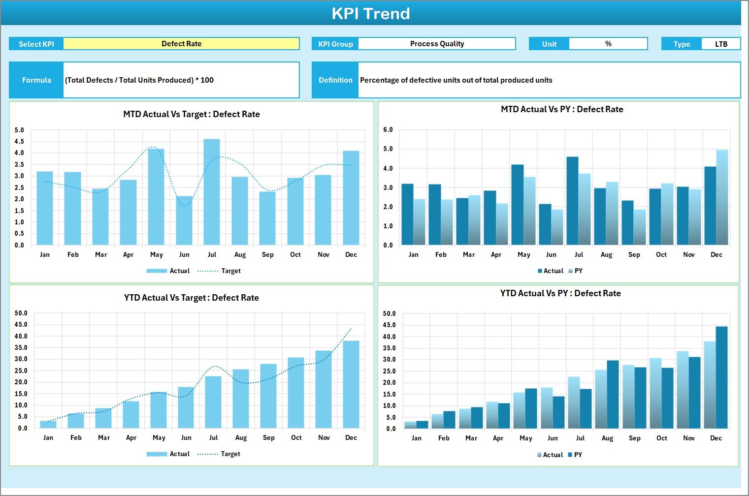 ✅ Manufacturing Teams – Track defects, rework rates, and compliance.