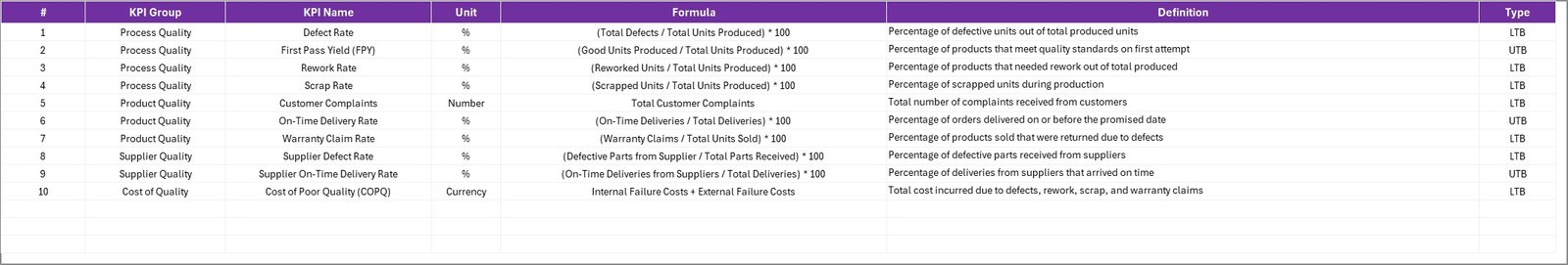 📂 What’s Inside the Quality KPI Scorecard