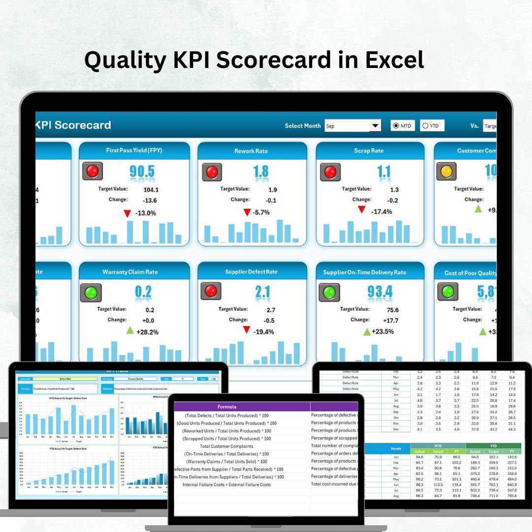 ✨ Key Features of the Quality KPI Scorecard in Excel