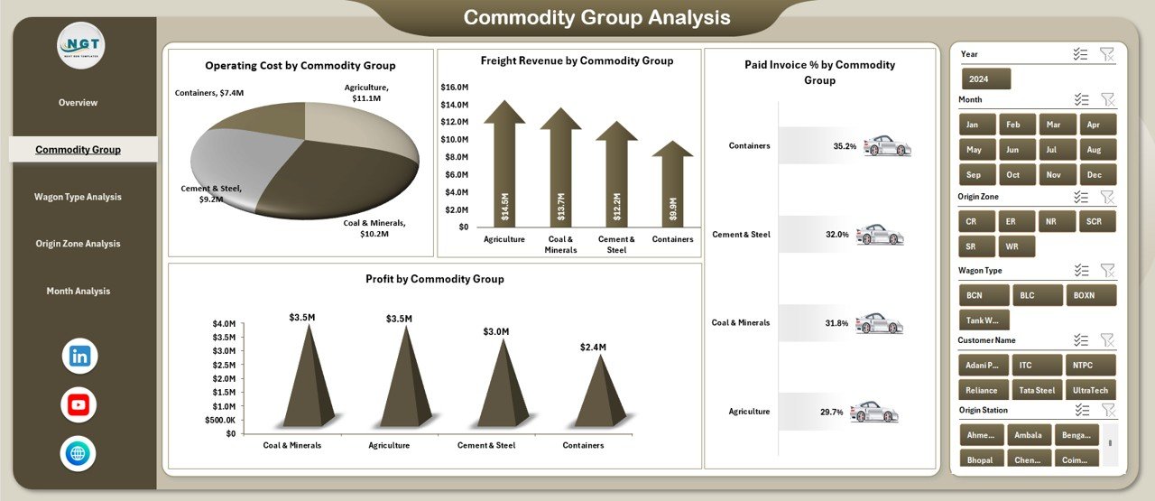 3️⃣ Use slicers to filter by month, zone, commodity group, wagon type, or customer