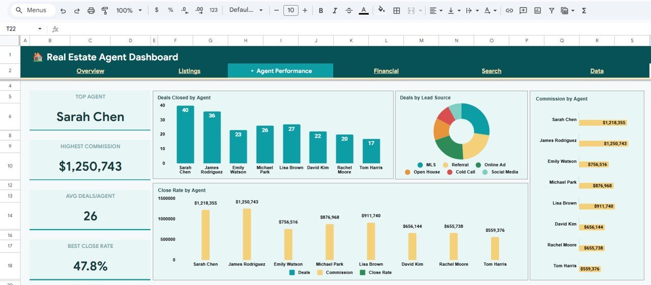 🔑 Key Features of Real Estate Agent Dashboard in Google Sheets