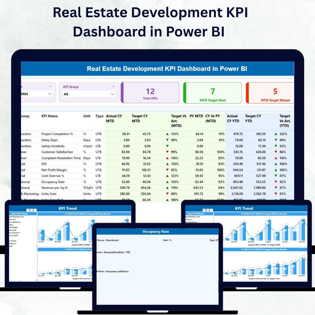 The Real Estate Development KPI Dashboard in Power BI revolutionizes how real-estate professionals monitor, analyze, and report performance.