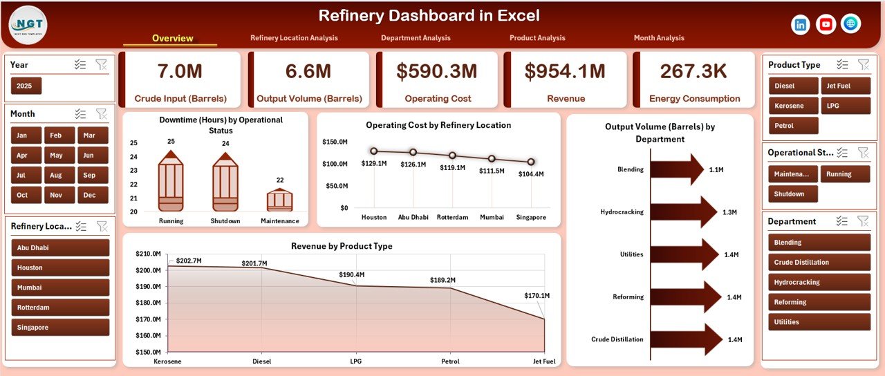 📂 What’s Inside the Refinery Dashboard in Excel
