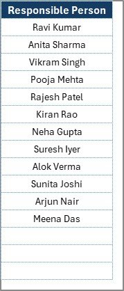 Assign Responsibilities – Use the dropdown to allocate each task to a team member.