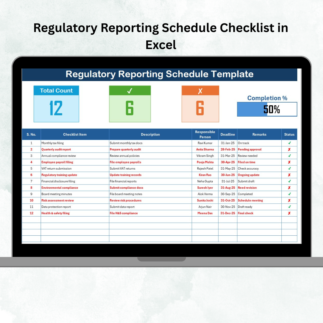 ⏰ Deadline Column – Ensure no reporting requirement is missed.