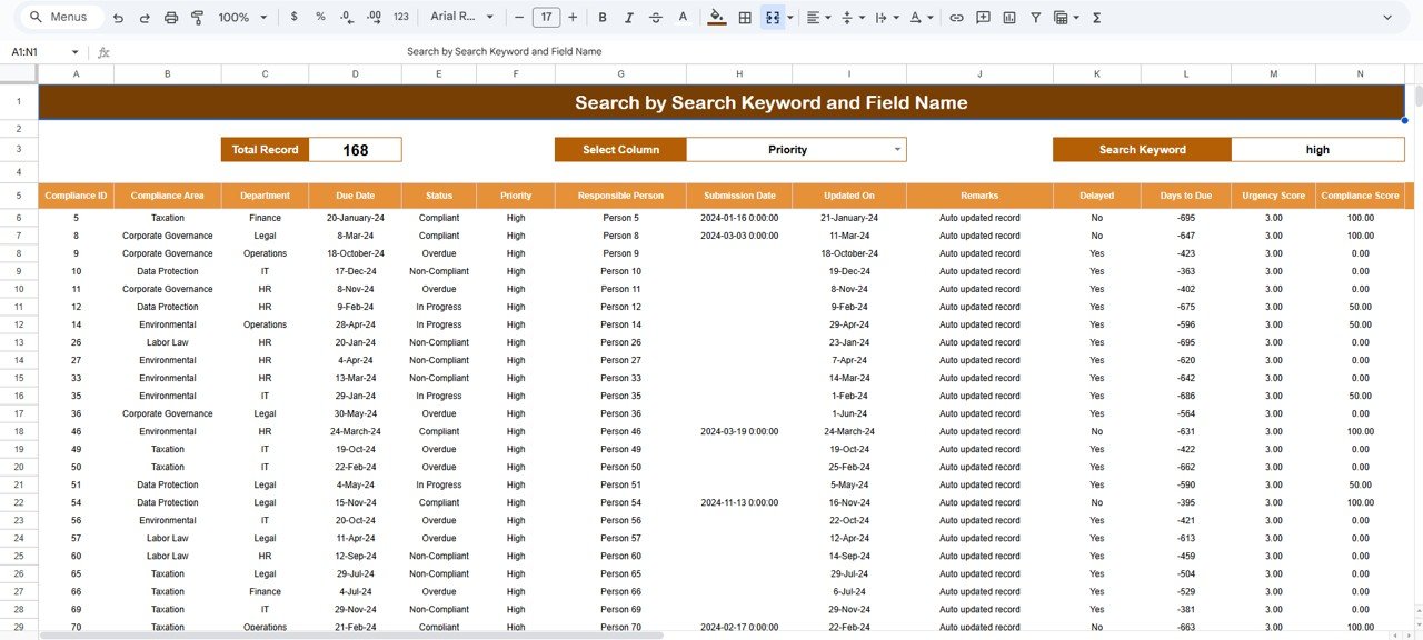 ✨ Key Features of the Regulatory & Statutory Compliance Dashboard in Google Sheets