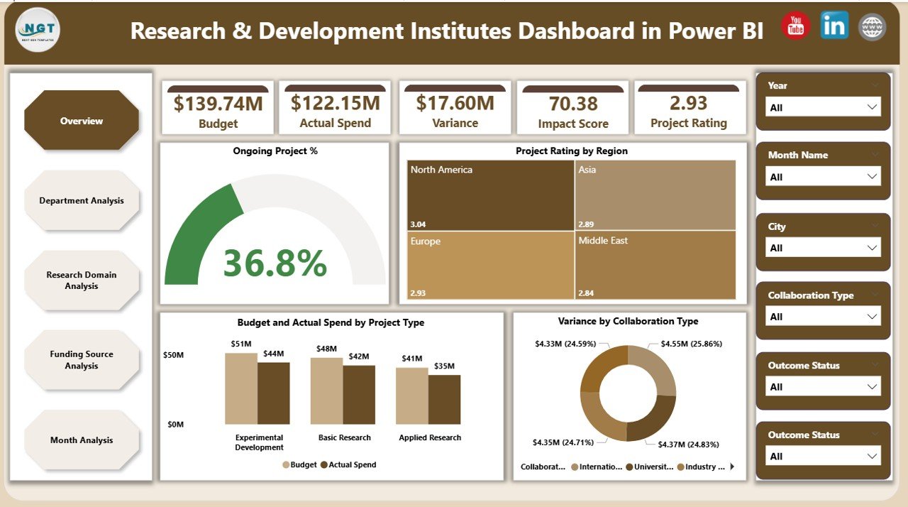 🔑 Key Features of Research & Development Institutes Dashboard in Power BI