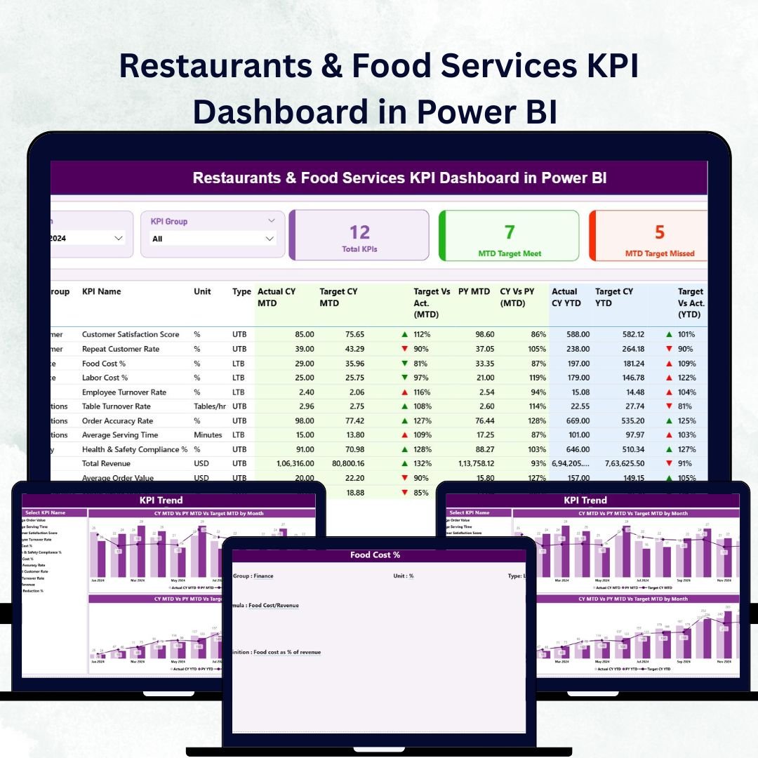 The Restaurants & Food Services KPI Dashboard in Power BI is a complete performance-management solution built for owners, managers, and finance teams who want data-driven clarity instead of guesswork. Restaurants & Food Services KPI Dashboard in Power BI Connected to your Excel data, it transforms complex numbers into beautiful, interactive visuals — helping you track sales, monitor costs, and boost service quality across every outlet in seconds ⚡.