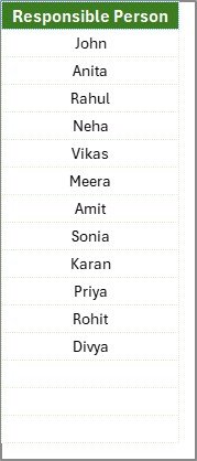 The second sheet includes a list of unique team members that automatically feeds the drop-down in the main table, helping you: