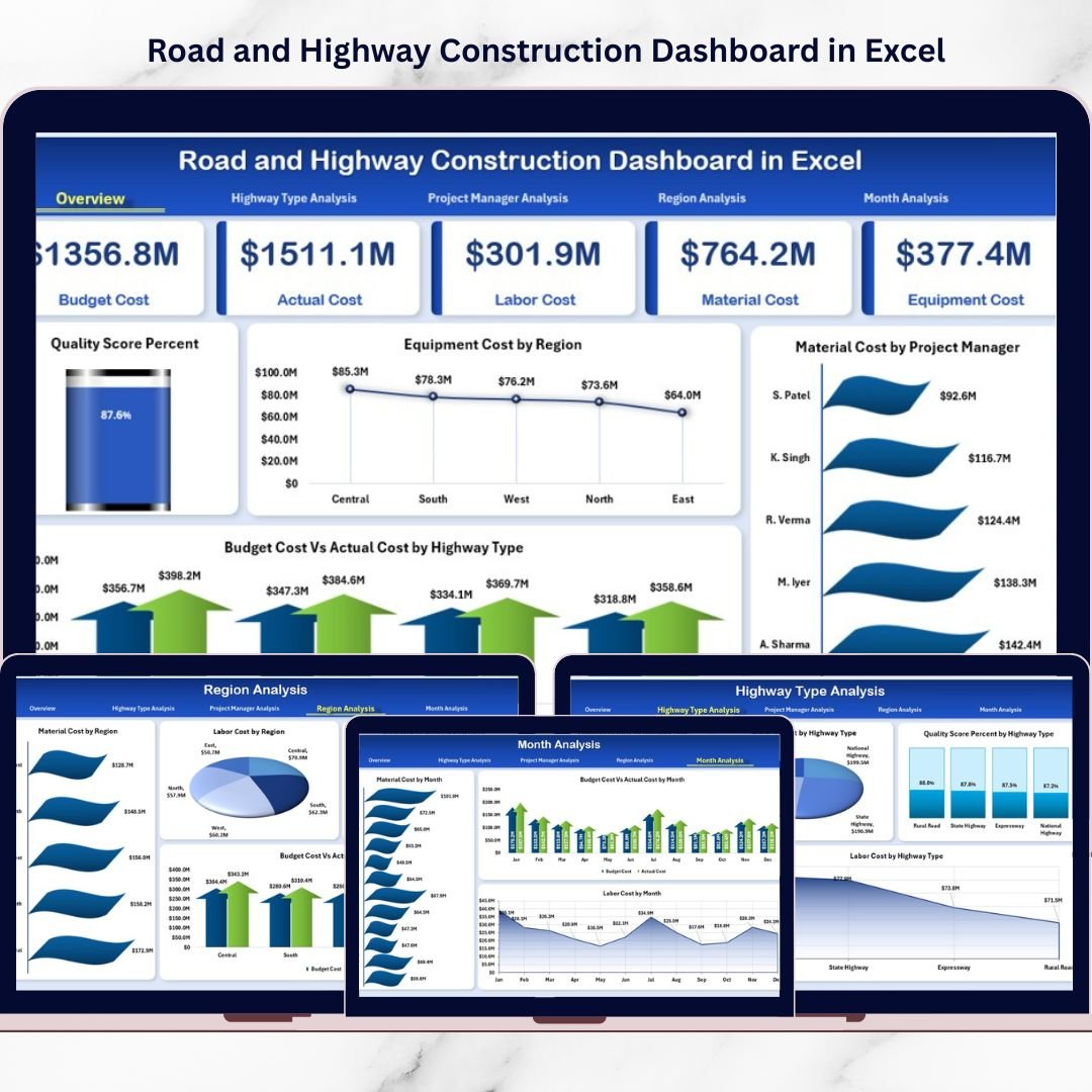 Introducing the Road and Highway Construction Dashboard in Excel — a ready-to-use, interactive reporting solution designed for construction companies that demand clarity, control, and cost discipline.
