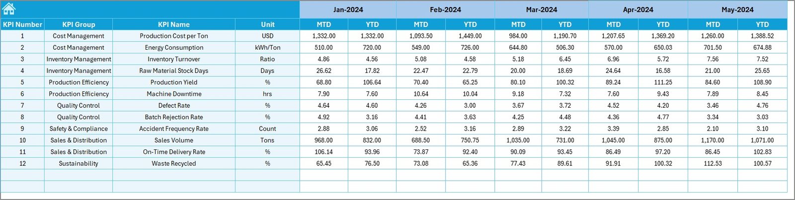 ✅ Customizable Design — Modify KPIs, formulas, or visuals to suit your plant’s needs — no advanced Excel skills required.