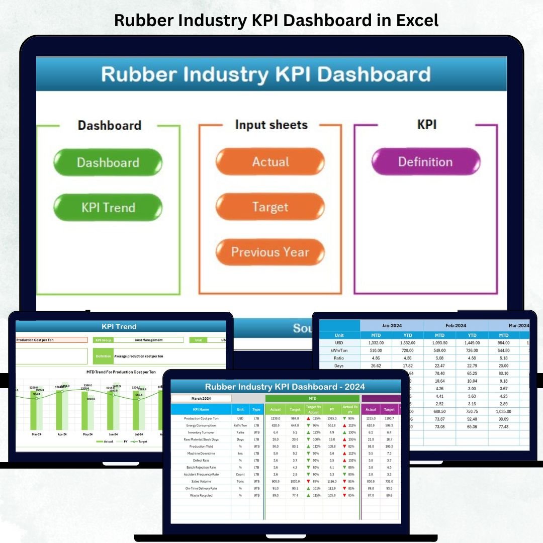 📂 What’s Inside the Rubber Industry KPI Dashboard in Excel