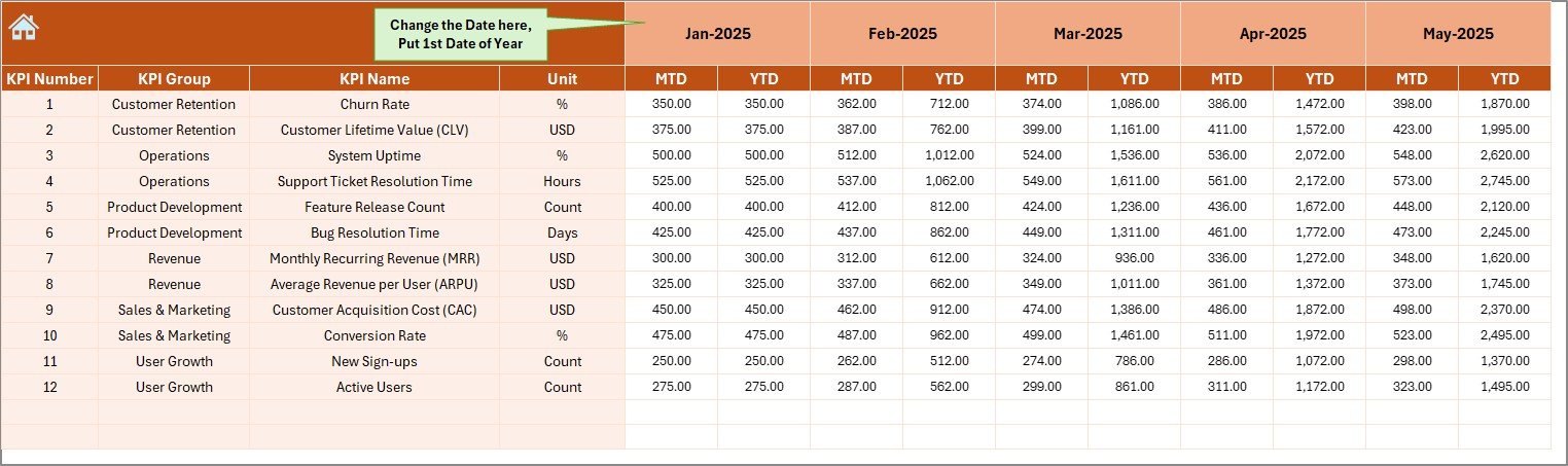 🛠 How to Use the SaaS Development KPI Dashboard in Excel
