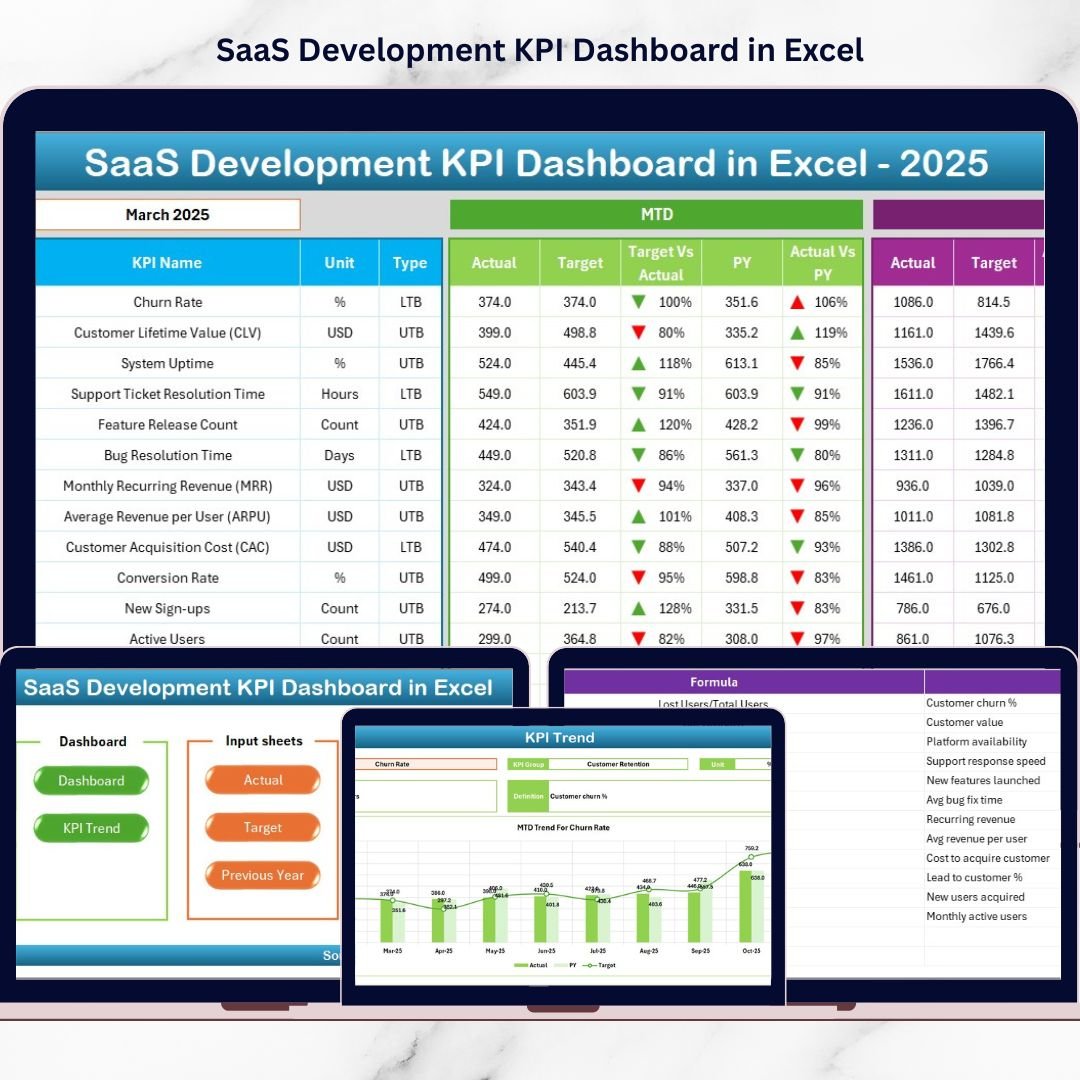 📂 What’s Inside the SaaS Development KPI Dashboard in Excel