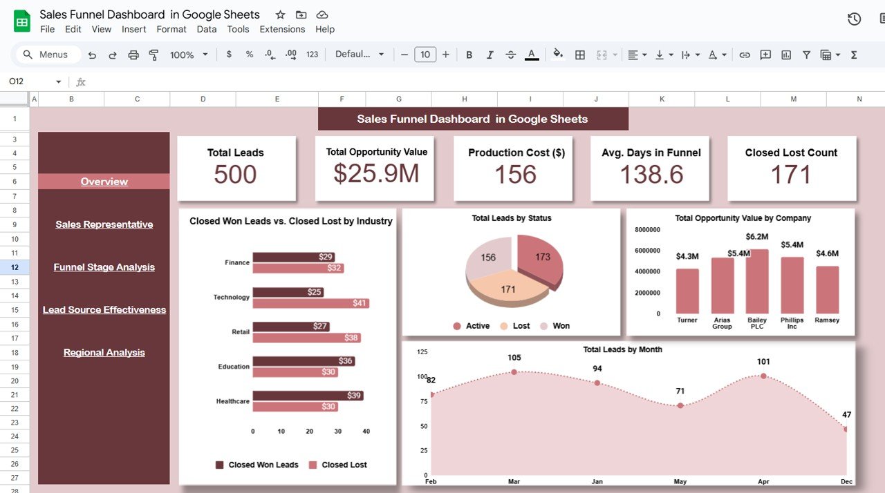 🔑 Key Features of the Sales Funnel Dashboard in Google Sheets