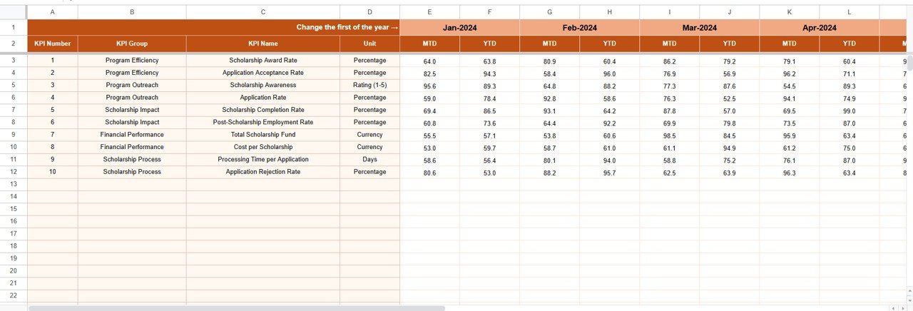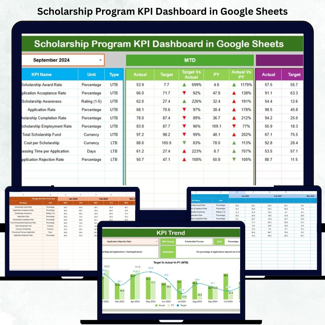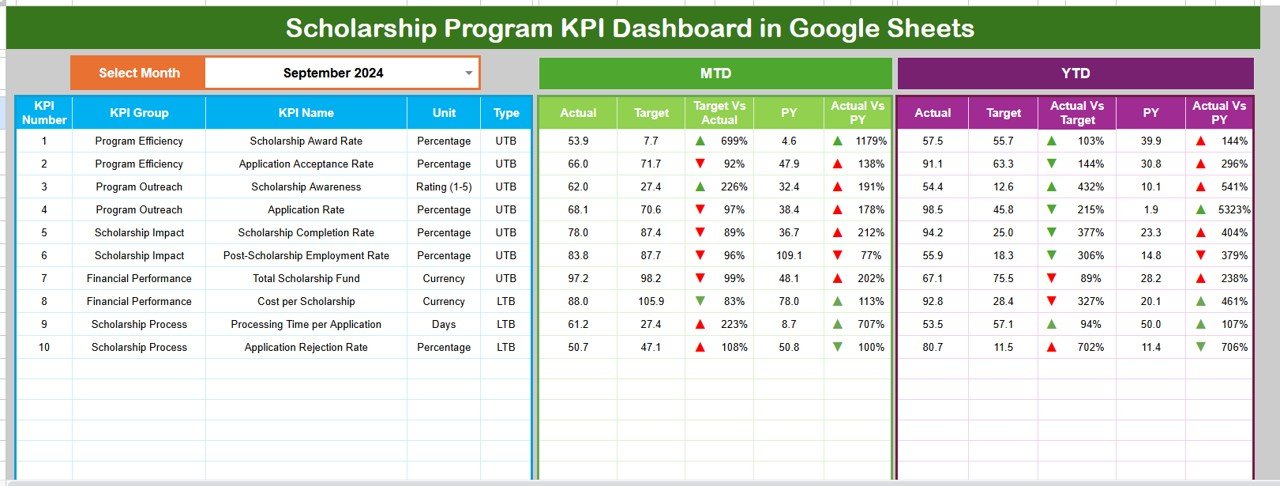 🎯 Key Features of Scholarship Program KPI Dashboard in Google Sheets