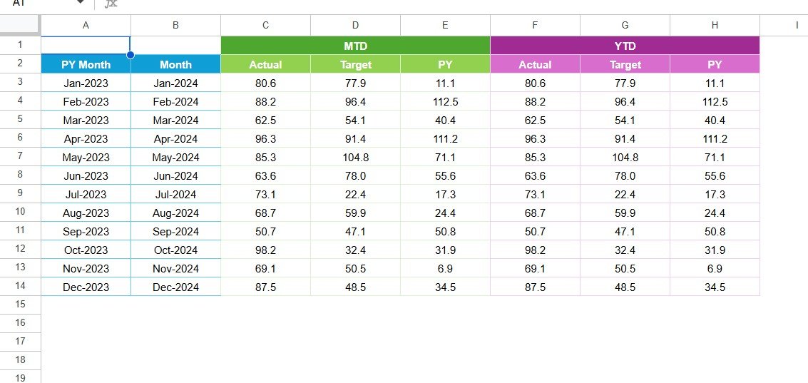 🔢 Automated Calculations: Built-in formulas handle MTD, YTD, and YoY (Year-over-Year) comparisons automatically.