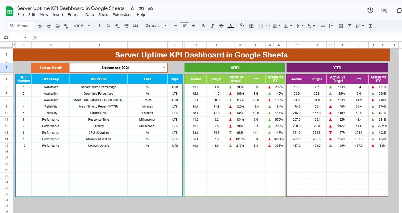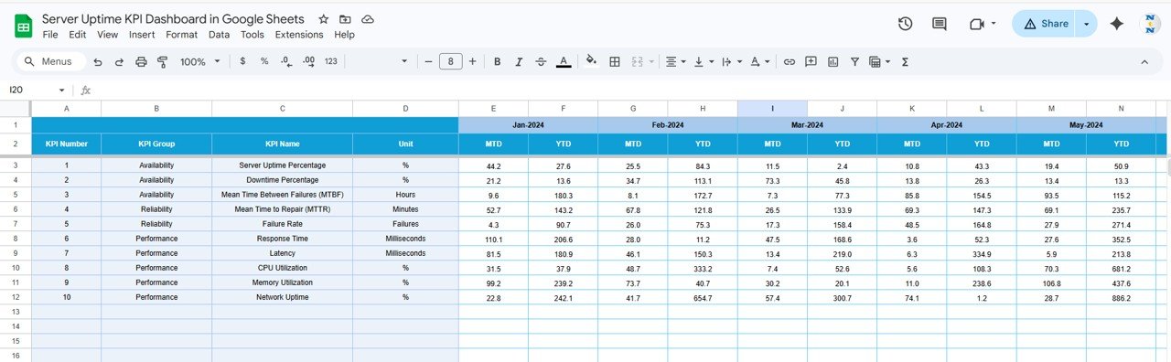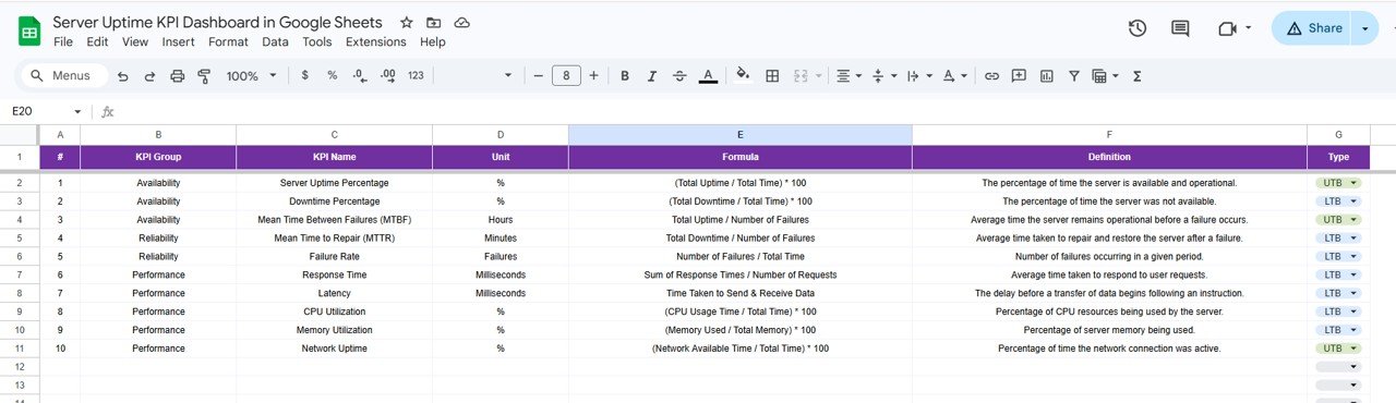 What’s Inside the Server Uptime KPI Dashboard in Google Sheets