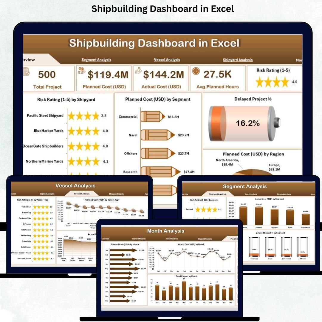 A Shipbuilding Dashboard in Excel is a structured reporting tool that tracks shipbuilding performance across: