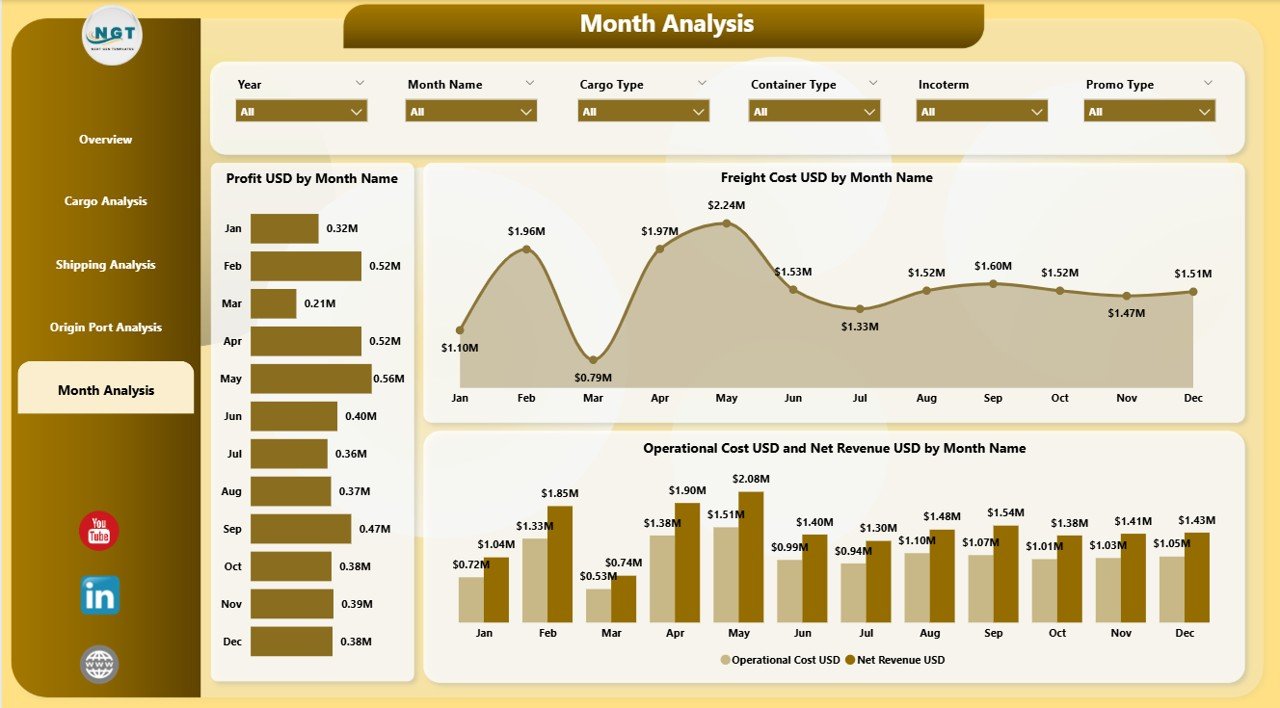 🎚 Use slicers to filter by port, customer type, cargo type, shipping line, or month