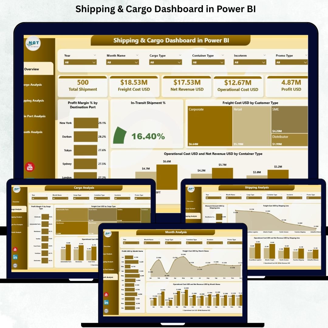 Shipping and cargo operations are becoming more complex every year. Logistics companies manage thousands of shipments, multiple ports, diverse customer types, and multiple cost components—all at the same time. When this information is scattered across files and spreadsheets, teams lose visibility and spend more time searching than analyzing. That’s where the Shipping & Cargo Dashboard in Power BI becomes a powerful game changer.