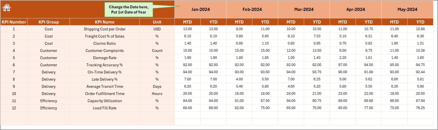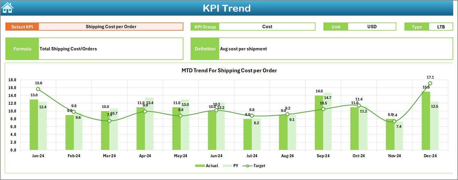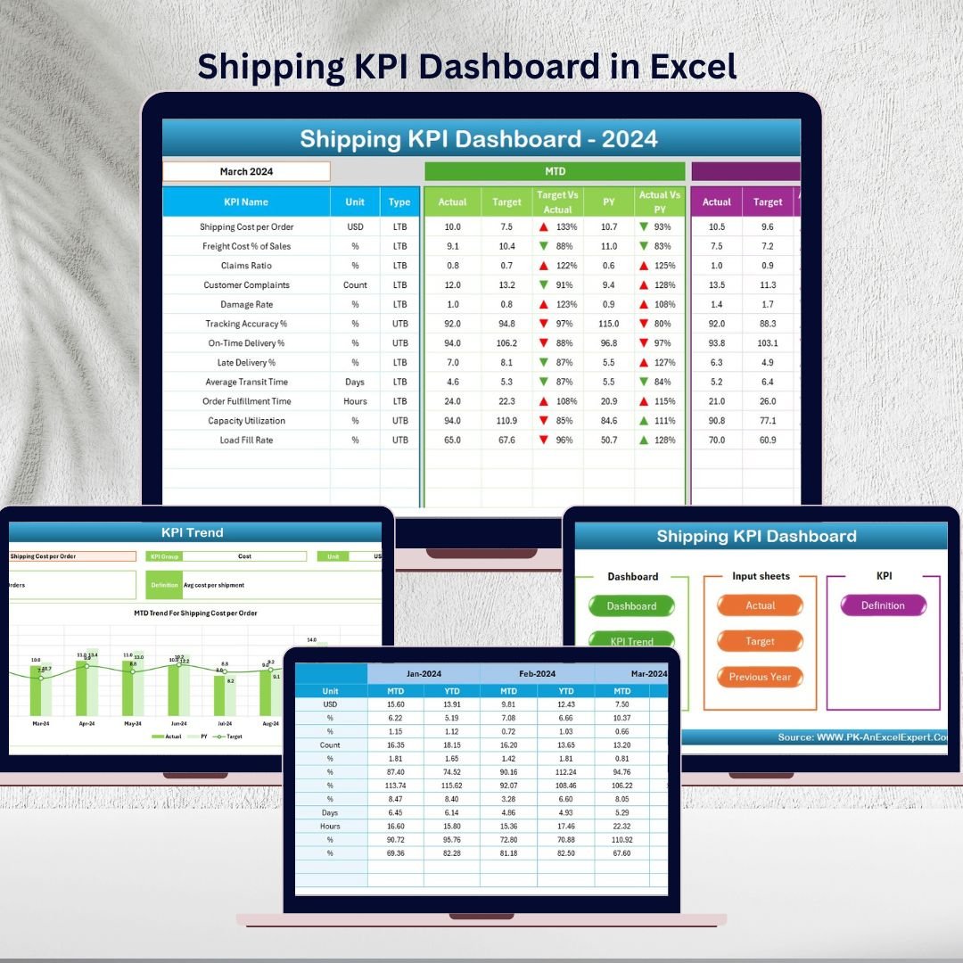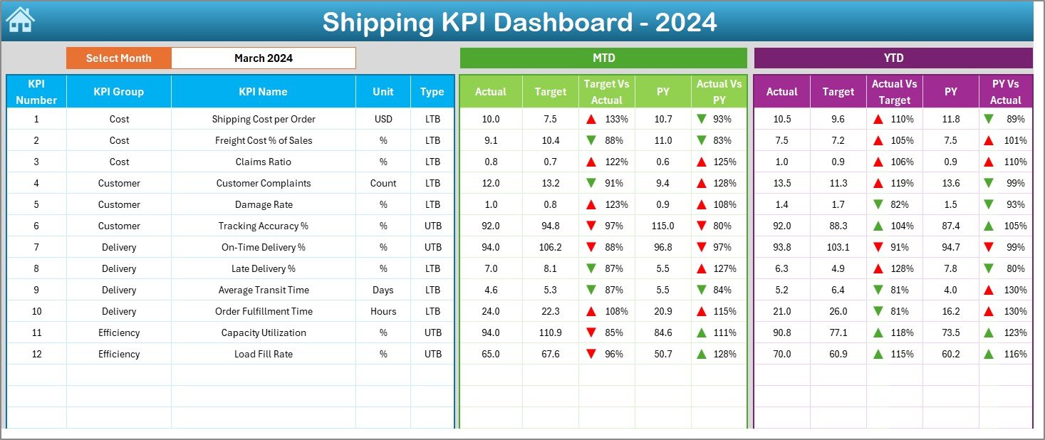When you download the Shipping KPI Dashboard in Excel, you’ll get: