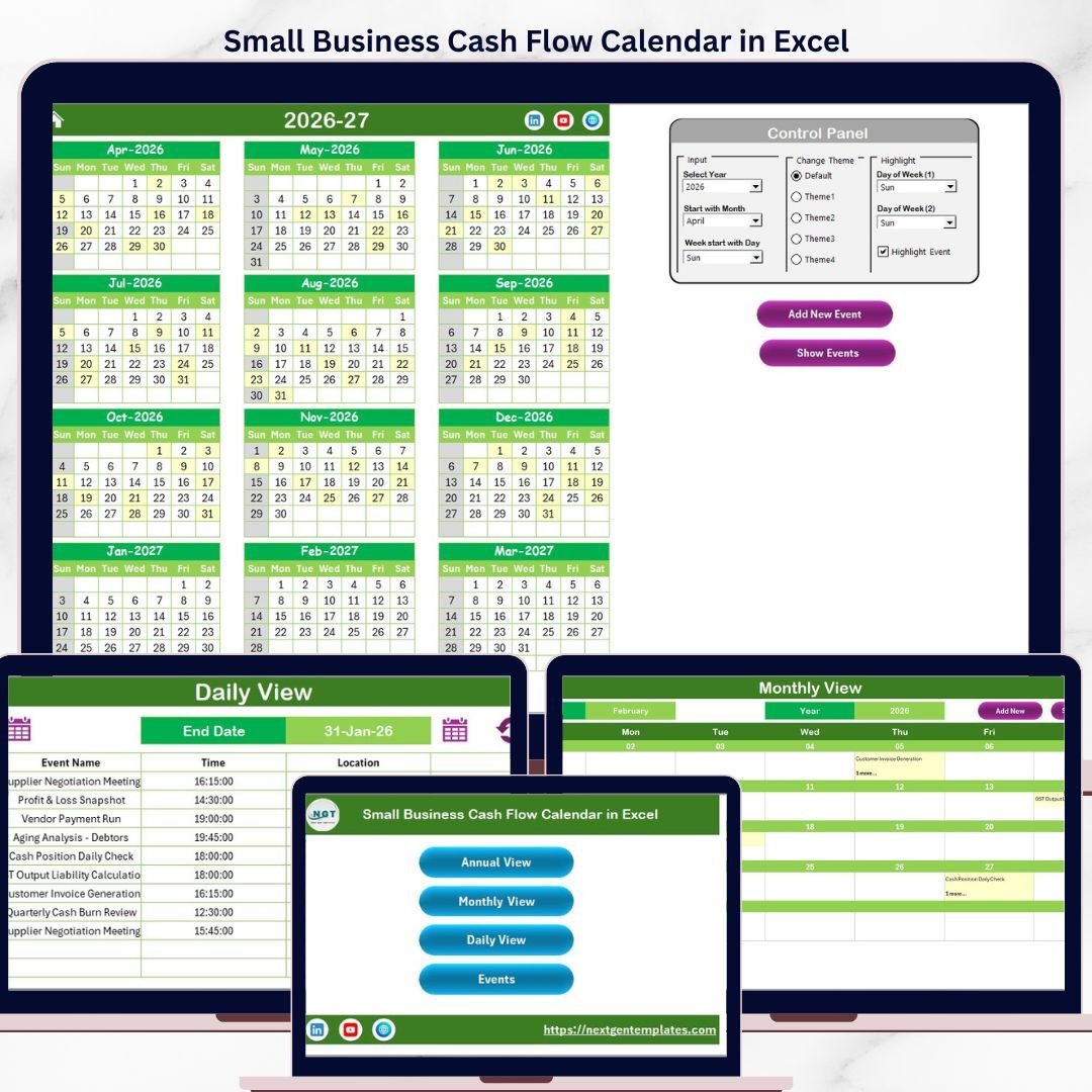 Small Business Cash Flow Calendar in Excel is a powerful tool designed to help business owners manage their cash flow efficiently throughout the year. This ready-to-use Excel template offers various views and features that simplify tracking income and expenses, enabling better financial planning and decision-making.