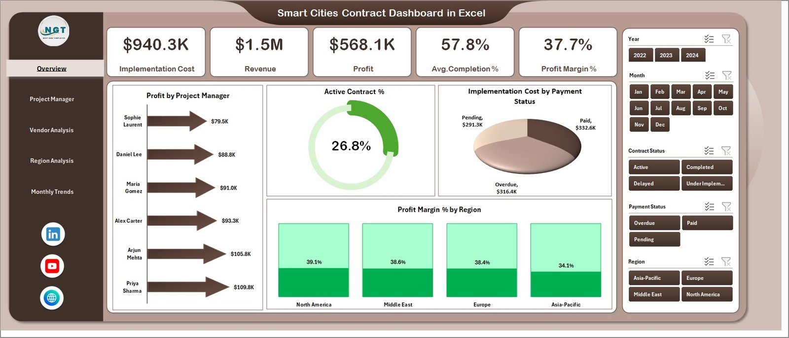 🚀 Key Feature of Smart Cities Contract Dashboard in Excel