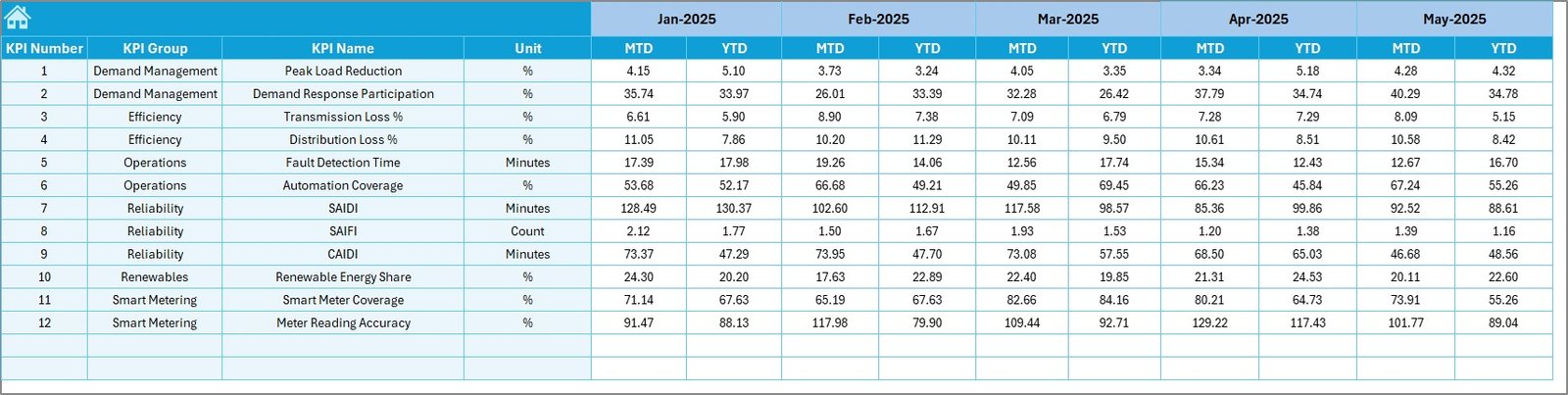 Add new KPIs, modify targets, or expand analysis as grid operations grow.