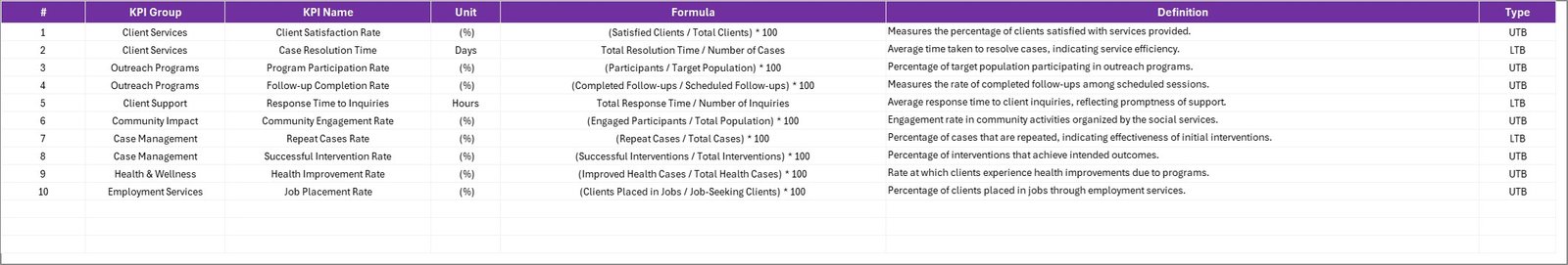 ⚙️ Key Features of the Social Services KPI Scorecard in Excel