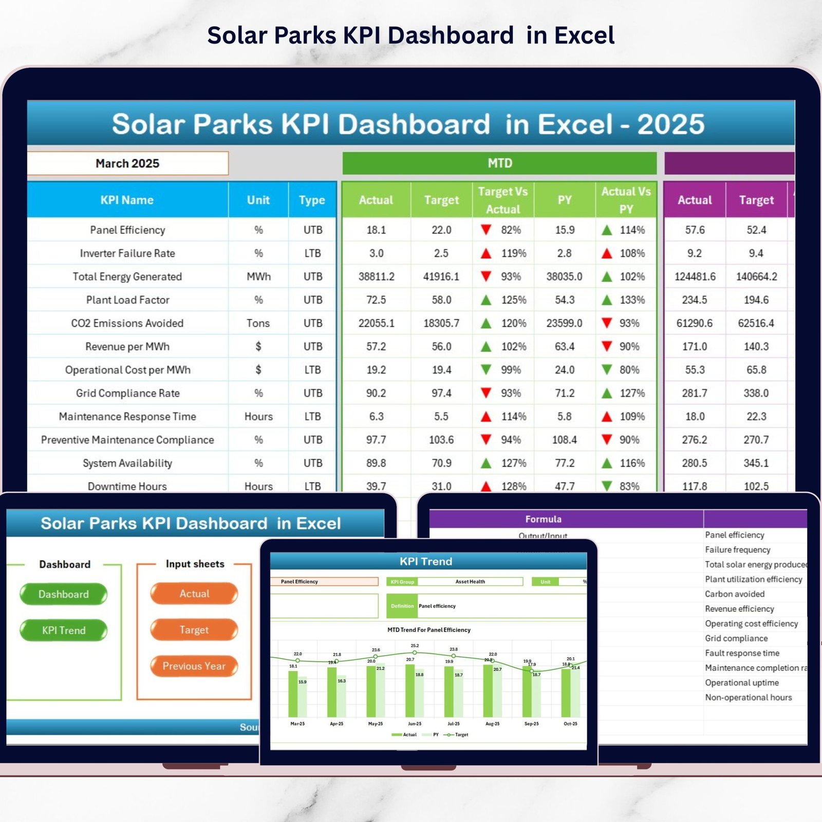 That’s why we created the Solar Parks KPI Dashboard in Excel — a powerful, ready-to-use performance monitoring solution designed specifically for solar park operations. This interactive Excel dashboard centralizes operational, technical, and financial KPIs into one easy-to-use system so you can track performance, compare targets, and improve efficiency without investing in expensive software.