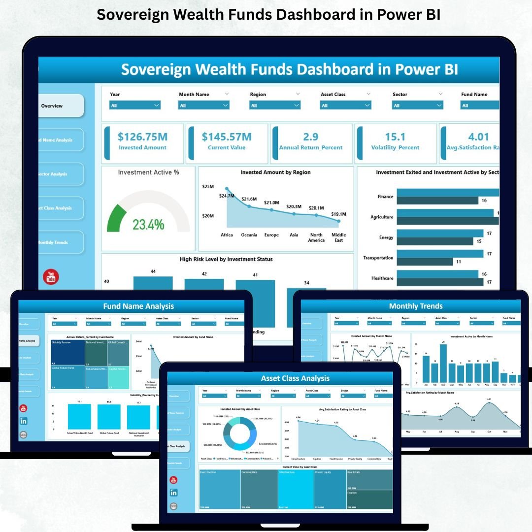 Sovereign Wealth Funds Dashboard in Power BI To solve this problem, the Sovereign Wealth Funds Dashboard in Power BI brings everything into one powerful, real-time, interactive dashboard. Built for investment teams, fund managers, analysts, risk officers, and leadership, Sovereign Wealth Funds Dashboard in Power BI this dashboard transforms raw Excel data into meaningful insights using dynamic visuals, KPIs, and trend charts.