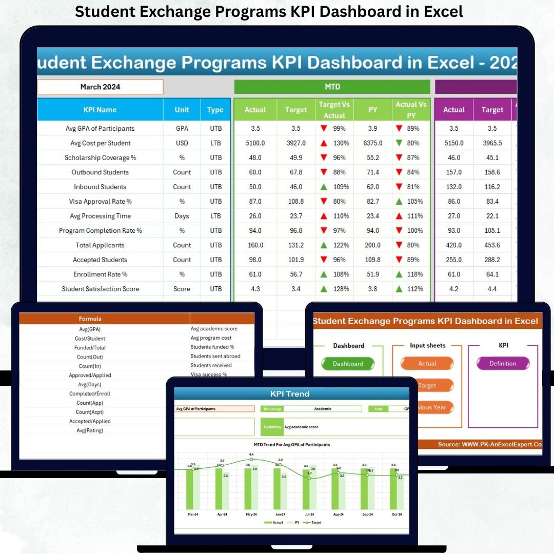 📂 What’s Inside the Student Exchange Programs KPI Dashboard in Excel
