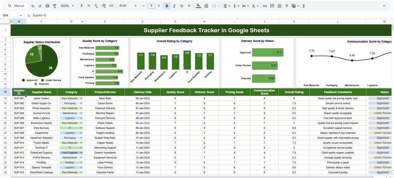 Managing supplier performance is essential for maintaining quality, reducing risk, and ensuring smooth operations. Whether you handle procurement, supply chain, or daily operations, inconsistent supplier evaluation can lead to delivery delays, poor product quality, contract disputes, and increased operational costs. When feedback is scattered across multiple sheets or emails, teams struggle to identify patterns, track issues, or make informed decisions.Supplier Feedback Tracker in Google Sheets